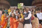 The Hon’ble Brajesh Pathak Deputy Chief Minister & Cabinet Minister of Legislative, Justice, Rural Engineering service in the Uttar Pradesh Government joined for the Sacred Ganga Aarti at Parmarth Niketan, Rishikesh to celebrate the 6th day of International Yoga Festival (IYF) with Pujya Swami Chidanand Saraswati, President of Parmarth Niketan and Pujya Sadhvi Bhagawati Saraswati, Director of IYF and was honored with Natraj Award and the sacred Rudraksha Sapling.