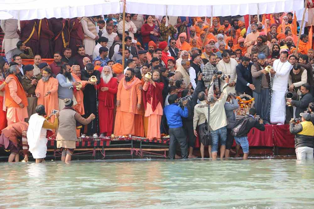 A beautiful Ardha Kumbha Mela inaugural ceremony brought together revered saints, eminent Mahants, Mahamandaleshwars and the heads of nearly every major traditional ashram and lineage in Rishikesh and Haridwar at Har Ki Pauri with the Hon’ble Chief Minister of Uttarakhand on the 12th January.
