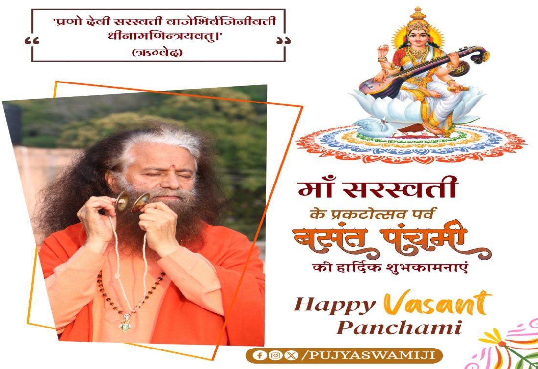 'प्रणो देवी सरस्वती वाजेभिर्वजिनीवती धीनामणिन्त्रयवतु।' (ऋग्वेद) माँ सरस्वती के रूप में हमारी बुद्धि, प्रज्ञा तथा मनोवृत्तियों की संरक्षिका, विद्या और विनम्रता की देवी "सरस्वती" के प्रकटोत्सव पर्व "बसंत पंचमी" की हार्दिक शुभकामनाएं। माँ सरस्वती हम सभी को अज्ञान से मुक्त करे तथा हम सभी में विनम्रता का वास हो। On the auspicious occasion of the manifestation festival of the Supreme Consciousness in the form of Goddess Saraswati, heartfelt greetings on the festival of "Basant Panchami." May Mother Saraswati, the guardian of our intellect, wisdom, and thoughts, liberate us from ignorance and instill...