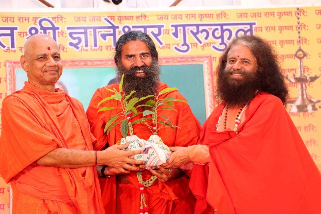 स्वामी चिदानन्द सरस्वती जी महाराज, स्वामी रामदेव जी महाराज और स्वामी गोविन्द देव जी महाराज ने सैकड़ों की संख्या मंे उपस्थित भक्तों और श्री ज्ञानेश्वर गुरूकुल के विद्यार्थियों को पर्यावरण संरक्षण का संकल्प कराया।