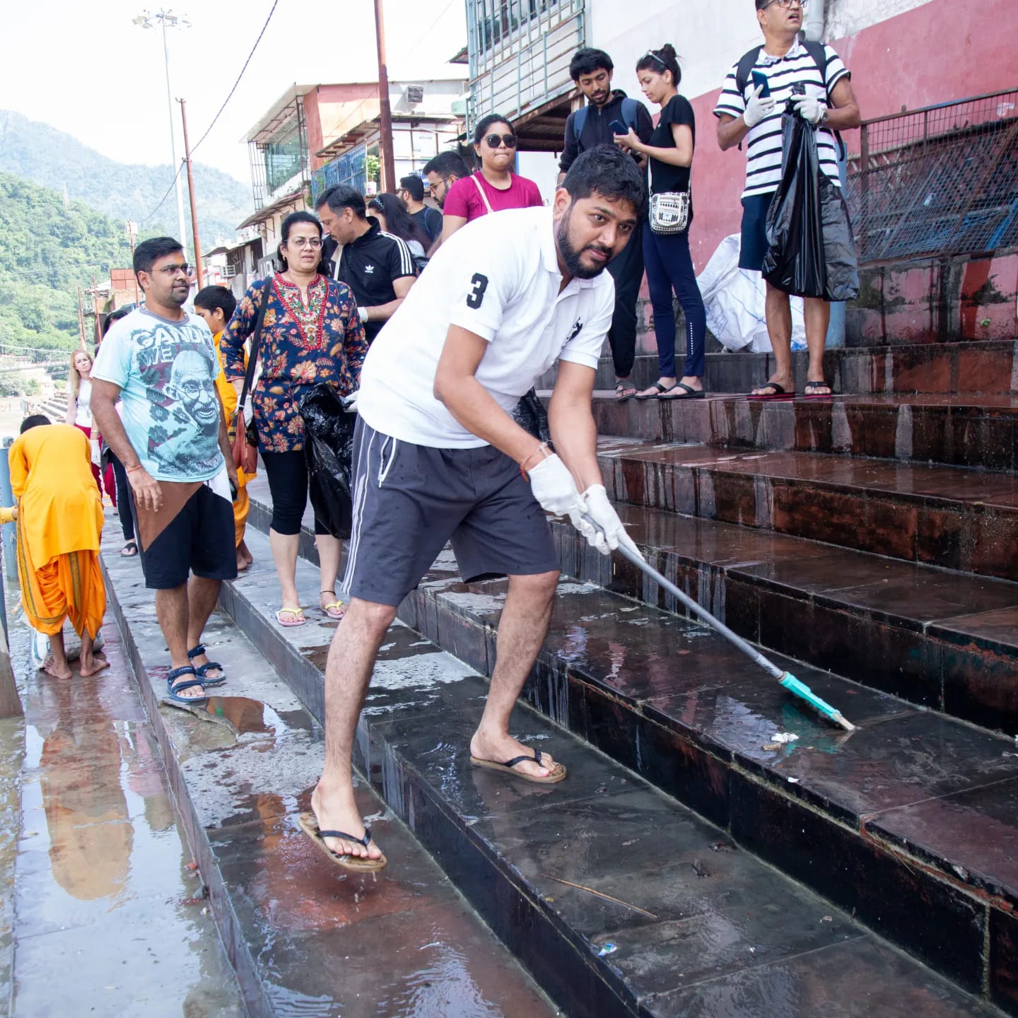 Our Co-Founder and President of Parmarth Niketan, HH Param Pujya Swami Chidanand Saraswatiji conducted a cleanliness drive (safai abhiyan) as a part of Gandhi Jayanti. The Minister of Health, Education and Cooperation, Government of Uttarakhand Dr. Dhan Singh Rawat, acharyas and Gurukul students of Parmarth, GIWA team members, and Yoga students participated in the drive.