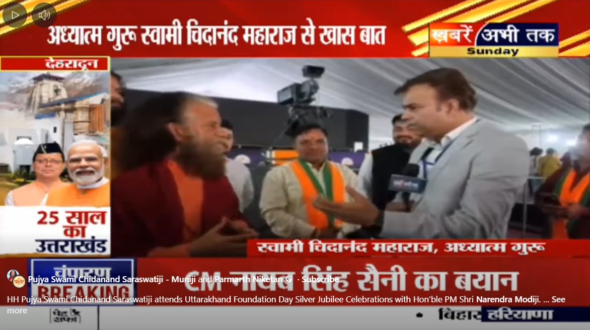 परम पूज्य स्वामी चिदानंद सरस्वती जी, परमार्थ निकेतन के परमाध्यक्ष, कोरोना के संकट काल में स्वस्थ और सुखी रहने का रास्ता समझाएँगे | Join Pujya Swami Chidanand Saraswatiji on India TV with Pankajji as He appreciates India TV’s...