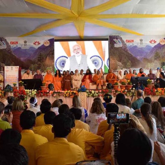 RISHIKESH – People from almost 100 countries were held in rapt attention as Hon’ble Shri Narendra Modiji delivered a stirring address at Parmarth Niketan’s renowned annual International Yoga Festival, in cooperation with the Government of India AYUSH Ministry and Uttarakhand Tourism.