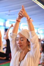 Gurmukh Kaur Khalsa, the disciple of Yogi Bhajan who founded Yogi Bhajan’s first yoga center in the United States, led an ecstatic kundalini class after sunrise themed, The Thunder Power Of Love ~ Courage, Commitment, Tenacity.