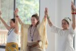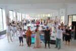 At the break of dawn, participants geared up for day 3 of the International Yoga Festival with a packed schedule of meditation, diverse range of yoga and divine music. The morning classes included Dr Indu Sharma a yogacharya who travels and teachers across India and the world led students to flow, meditate and express with art; Famous Gurushabd Singh Khalsa- a pioneer of Kundalini Yoga music, his tunes are evergreens and are being played in yoga studios around the world; and so many others. On the famous Parmarth Yoga Ghat, Sudhanshu Sharma led her students in engaging with sunrise chanting; later with Kia Miller on yoga ghat leading all participants with a session of flowing with Ganga, focusing on breath and focus in tantric haha.