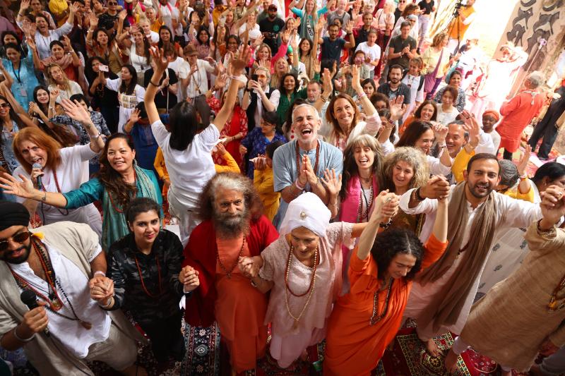 After the sacred Yagna and divine Ganga Aarti, internationally recognized kirtan singer Visvambhar Sheth soulfully blended guitar, harmonium, bansuri flute, sitar, and cajon, as participants hearts filled with love and peace, marking the end of the second last day of IYF with everyone’s hearts full of love, gratitude, and devotion.