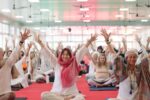 Presenter Erica Kaufman who teaches Lila Yoga and was celebrating her birthday today said “I am here at Parmarth Niketan joining my beautiful family, where so many people are coming from all parts of the world to connect to the source of goodness, to let go of all the trash around in our mind and to open up the pure, come join us here at IYF, My home here away from home. I can’t think of a better way to celebrate my birthday!”