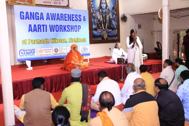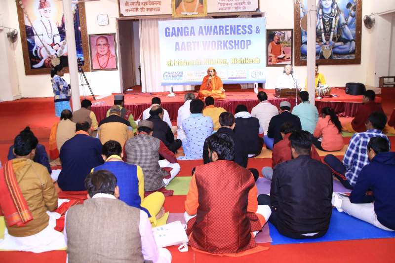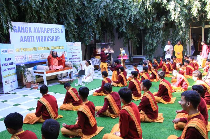 RISHIKESH – A unique first ever Ganga Awareness and Aarti Workshop was held at and organised by Parmarth Niketan, Rishikesh in joint partnership with Namami Gange, Jal Shakti Ministry, Government of India and it’s Arth Ganga initiative as well as Ganga Action Parivar and Global Interfaith WASH Alliance.