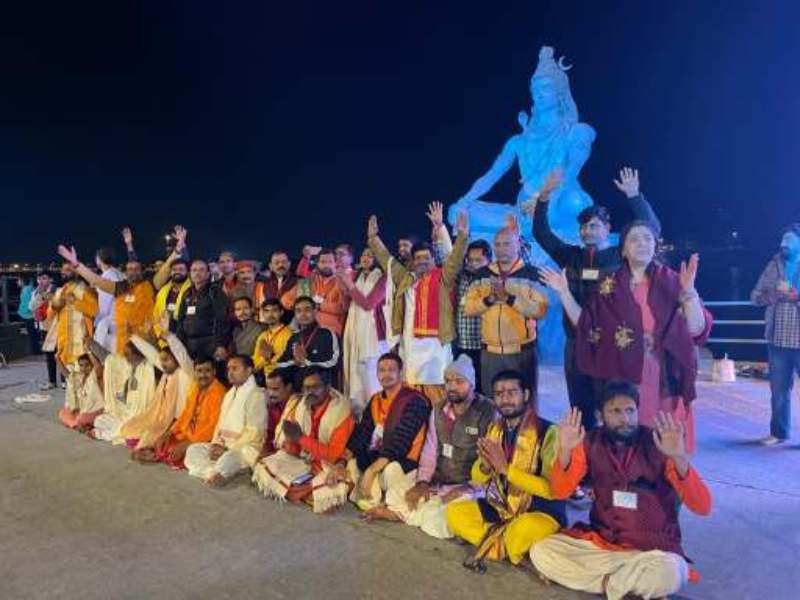 The second day continued with a collective Ganga Snan and beautiful samohik Bhandara ceremony followed by practice session of the Ganga Aarti and chanting that culminated in the second day’s extraordinary Ganga Aarti as Participants joined from the sacred Shiva Ghat and performed the Ganga Aarti across from Param Pujya Swamiji and pledged with him to be champions of the environment, protecting and conserving Mother Ganga and inspiring the same amongst the masses. They heard messages from Pujya Sadhvi Bhagawatiji and the Hon’ble DG’s video message on the occasion and then also had a very special private session and interaction with Param Pujya Swamiji and Pujya Sadhviji in which they were given sacred Rudraksha saplings as they departed back to their homes.