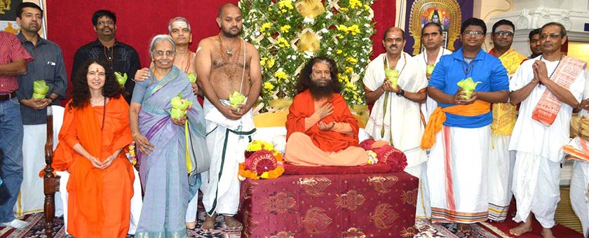 Pujya Swamiji and Sadhvi Bhagawatiji were warmly welcomed to the Hindu Temple in Louisville, Kentucky, by the residents and devotees. The priests expressed their gratitude for Pujya Swamiji’s care, compassion and concern towards the temple from the very beginning of the temple’s formation. Pujya Swamiji offered a beautiful sacred green Bhel sapling as a symbol and reminder to celebrate the Navratri festival as a Green festival.