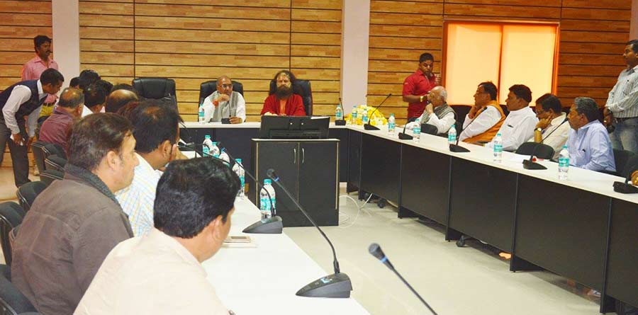 Pujya Swamiji met with the Head of the Central Wing of Simhastha Kumbha Mela, Shri Makhan Singhji and on the same day, a much larger meeting was organized with the entire team of the Simhastha, including District Magistrate, Shri Rajesh Rajora, Mela Adhikari Shri Avinash Lavania, lAS, District Collector Shri Kavindra Kiyawat, IAS, and others, in mid February.