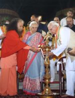 HH Param Pujya Swamiji Welcomes the Hon’ble Governor of Uttar Pradesh, Smt Anandiben Patelji; the Hon’ble Governor of Kerala, Shri Arif Mohammad Khanji; Nationalist Thinker, Shri KN Govindacharyaji; Divine Shakti Foundation President, Sadhvi Bhagawati Saraswatiji; Nari Sansad Executive Convenor and Senior Journalist, Shri Ravishankar Tiwariji; Delhi University’s Dr. Rachna Bimalji; and, Others.