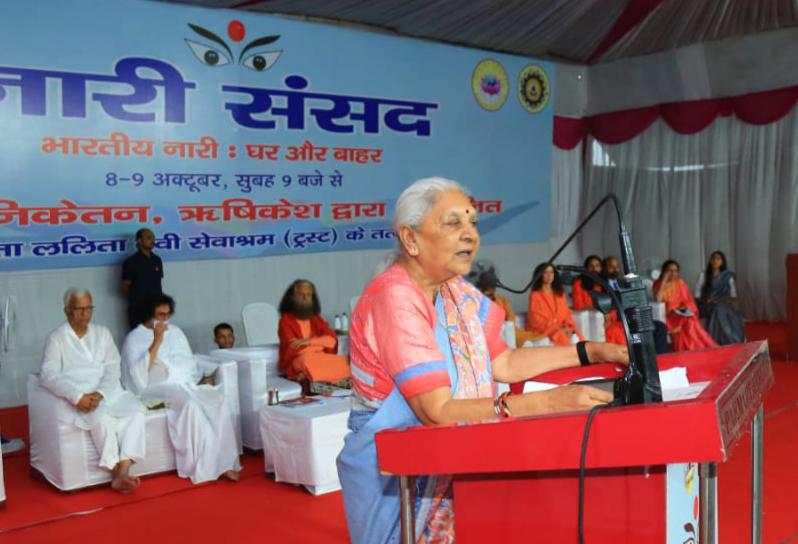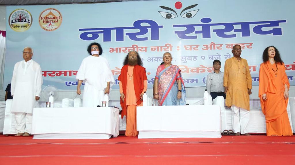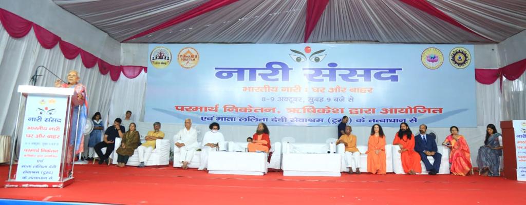 ऋषिकेश, 8 अक्टूबर। परमार्थ निकेतन में आज से नारी संसद का आगाज़ हुआ। परमार्थ निकेतन के अध्यक्ष स्वामी चिदानन्द सरस्वती जी के पावन सान्निध्य में मुख्य अतिथि माननीय राज्यपाल, उत्तरप्रदेश श्रीमती आंनदी बेन पटेल जी, साध्वी भगवती सरस्वती जी की पावन उपस्थिति में नारी संसद, भारतीय नारी-घर और बाहर का शुभारम्भ हुआ।