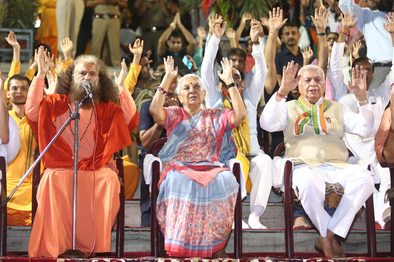 HH Param Pujya Swamiji Welcomes the Hon’ble Governor of Uttar Pradesh, Smt Anandiben Patelji; the Hon’ble Governor of Kerala, Shri Arif Mohammad Khanji; Nationalist Thinker, Shri KN Govindacharyaji; Divine Shakti Foundation President, Sadhvi Bhagawati Saraswatiji; Nari Sansad Executive Convenor and Senior Journalist, Shri Ravishankar Tiwariji; Delhi University’s Dr. Rachna Bimalji; and, Others.