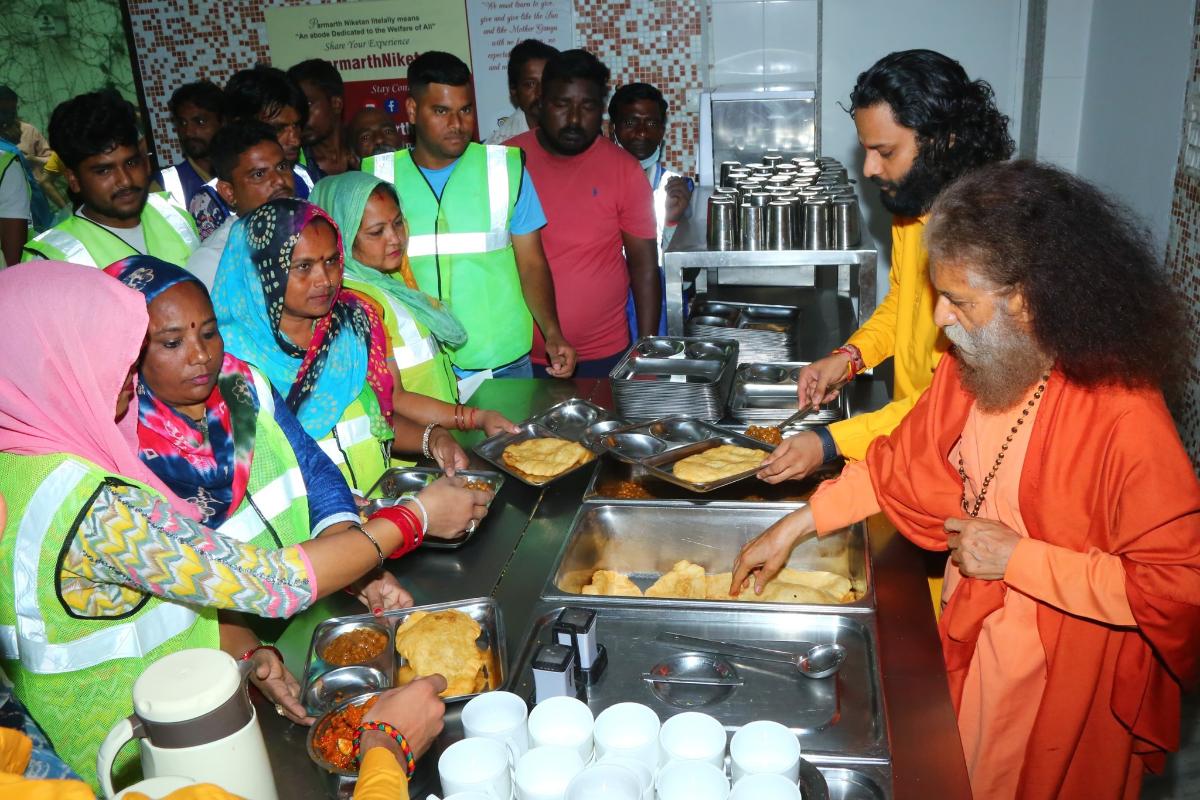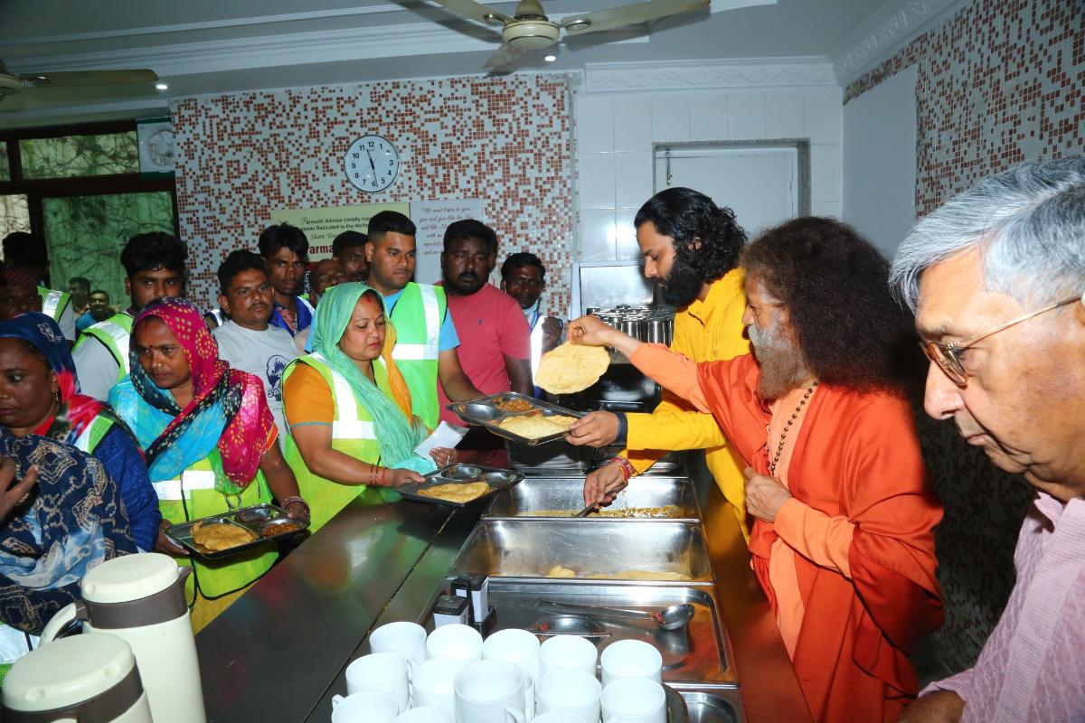 Pujya Swami Chidanand Saraswati Ji lovingly served a meal and honoured the sanitation workers and environmental guardians at Parmarth Niketan today.