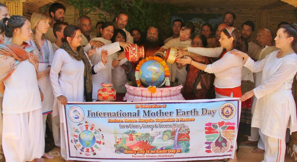 Today Parmarth Niketan Ashram hosted very special International Mother Earth Day Celebrations, inspired and led by H.H. Pujya Swami Chidanand Saraswatiji, President of Parmarth Niketan, Founder of Ganga Action Parivar and Co-Founder of Global Interfaith WASH Alliance (GIWA). Pujya Swamiji inspired local schools and colleges to encourage each student to engage in green actions, such as planting and watering trees, environmental drawing competitions as well as slogan writing/awareness raising campaigns, dedicated to Mother Earth during their school day as a symbol of their commitment to make every day a green day. Ganga Action Parivar and GIWA volunteers helped the schools plan and execute these campaigns.