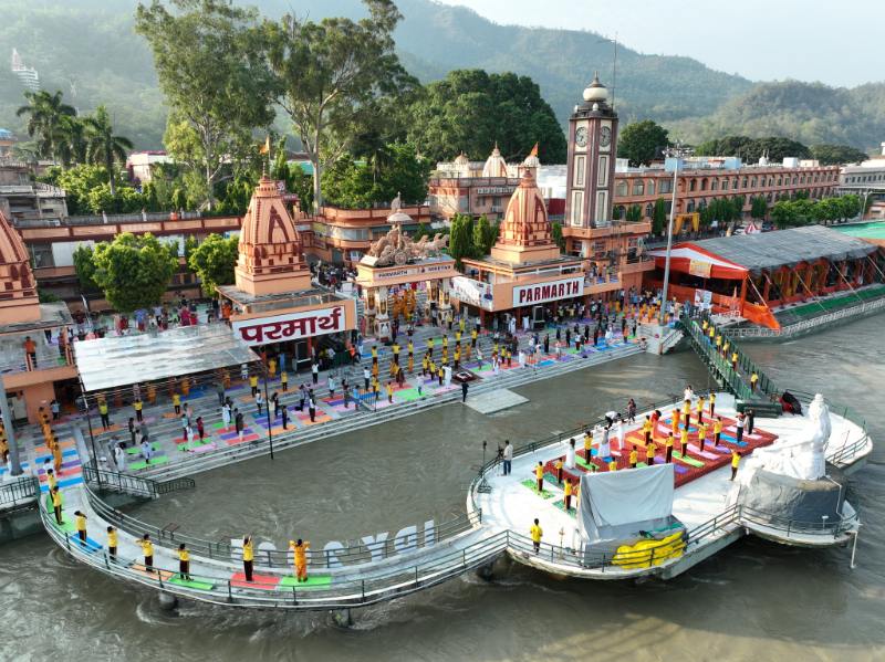 परमार्थ निकेतन के अध्यक्ष स्वामी चिदानन्द सरस्वती जी ने उद्बोधन दिया कि अन्तर्राष्ट्रीय योग दिवस हमें सारी सीमाओं को लांघते हुए योग के सार्वभौमिक रूप के दर्शन करता है।