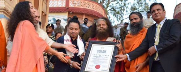 The International Yoga Festival at Parmarth Niketan will be listed in the official World Record book and Pujya Swamiji and Sadhvi Bhagawatiji were congratulated by the officials from India and the United Kingdom – Shri Virendra Sharma (Member of Parliament, England), Dr. Diwakar Sukul (Chairman, World Book of Records, London), and other international dignitaries.
