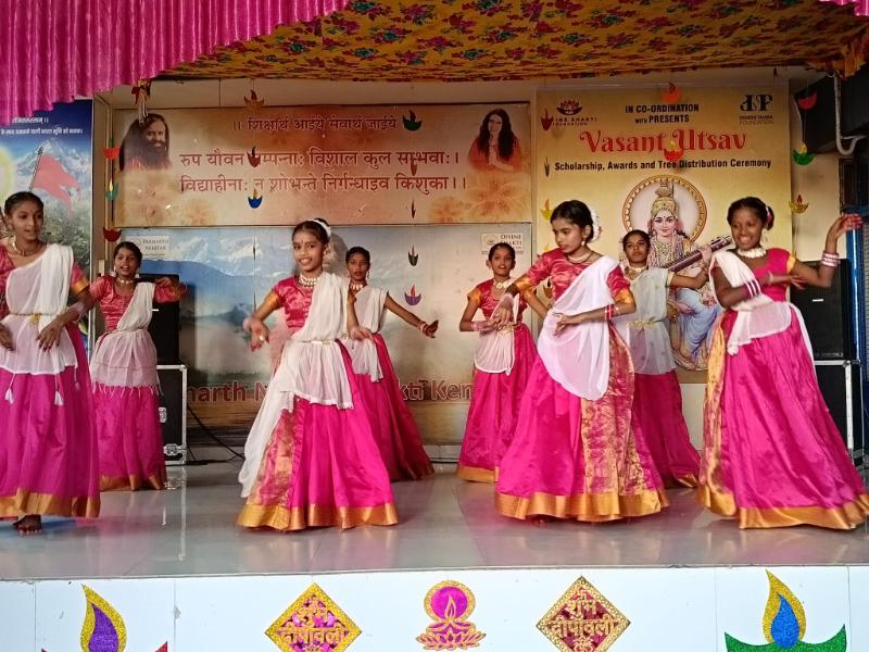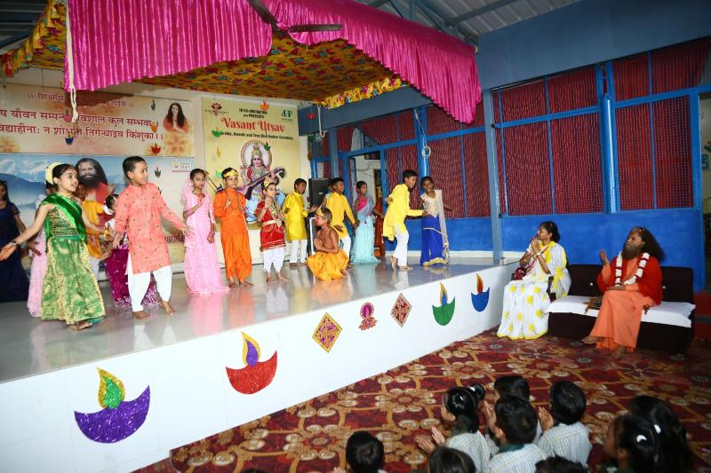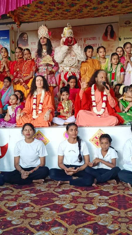 The highlight of the celebration was a cultural performance featuring Pahadi folk dances and a lively drama with students portraying Ram, Lakshman, and Hanuman. This beautiful performance captured everyone’s hearts, bringing smiles, laughter, and admiration from the audience, especially Swamiji and Sadhviji!