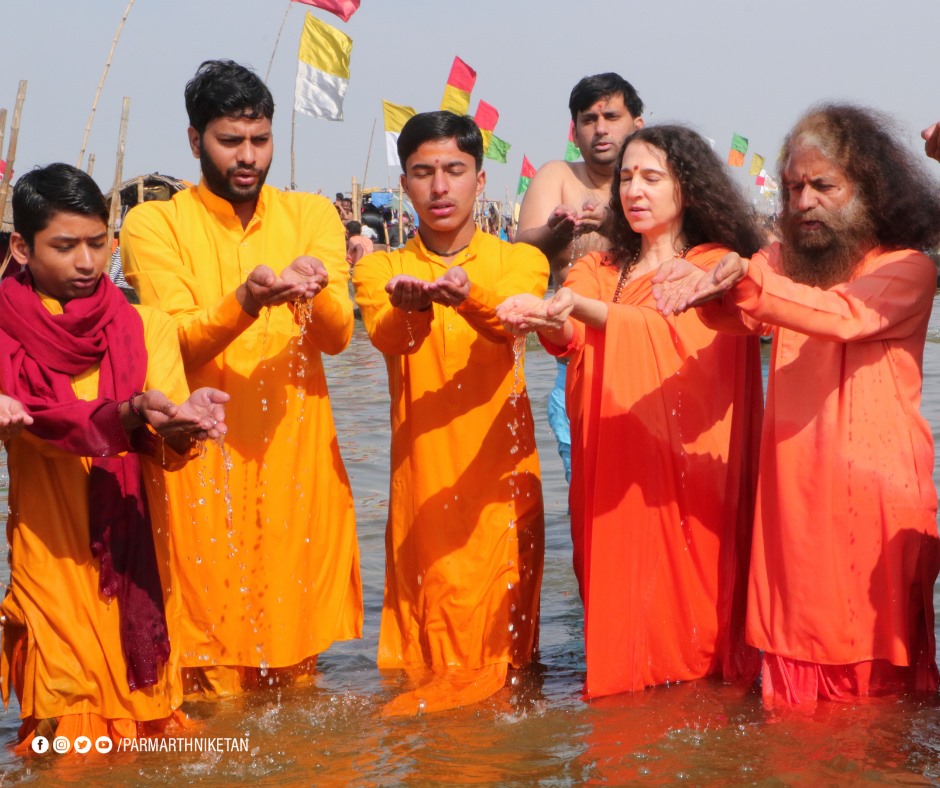 HH Pujya Swami Chidanand Saraswatiji – Muniji reminded us that we bathe in Ganga out of our love and devotion for Her ever-flowing love and grace. He so beautifully shared: “Kumbh is not an external exhibition, but is for internal Self discovery. During this Kumbh let us take care of our future by remembering that our culture and nature must go hand in hand. This is the message we must take from our sacred festivals that help us remember and strengthen our connection with our nature and our culture.”