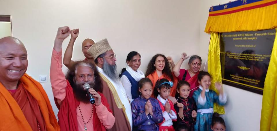 LADAKH: A joyous inauguration of a new toilet complex took place in Leh- Ladakh at the Mahabodhi International Meditation Centre – MIMC near the campuses large meditation and prayer hall, which was led by Pujya Swami Chidanand Saraswatiji – Muniji, Pujya Sadhvi Bhagawati Saraswati, organized and hosted by Ven Bhikkhu Sanghasena, Founder of MIMC and graced by IMAM UMER AHMED ILYASI, resident of the All India Imam Organisation, Dr Vandana Shiva, Founder of Nadanya, Sulekha Kumbhare, Hon’ble Member, Minority Commission, GoI, Nagpur and Maj Gen Yash Mor,General Officer Commanding, Leh Sub Area and many other eminent dignitaries.