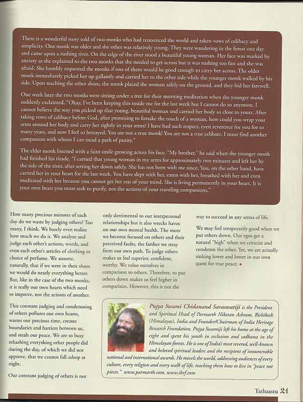 “Judgement: We Are Lower Than Those We Condemn”, Tathaastu Magazine, July 2011
