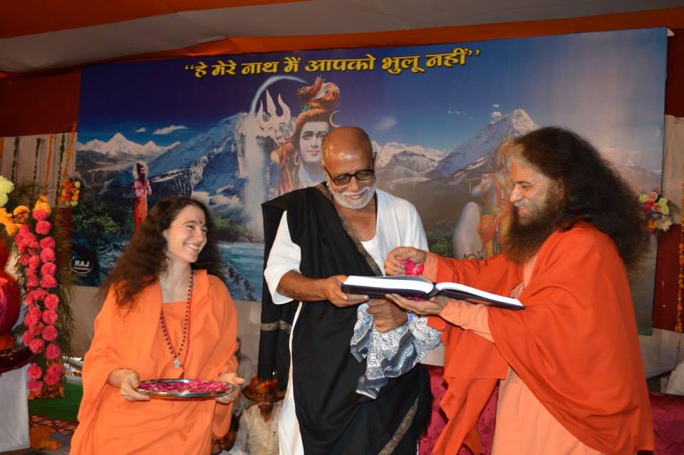On October 15th, Pujya Morari Bapuji came to Parmarth and after his beautiful discourse, where Pujya Swamiji and Sadhvi Bhagawatiji presented him with the new international edition of the Encyclopedia of Hinduism.