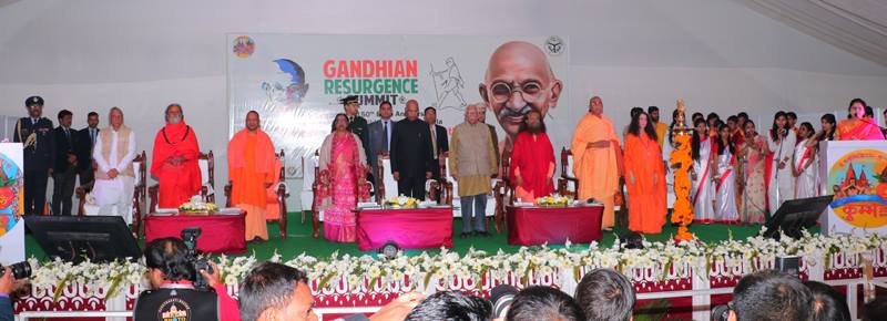 The Hon’ble President of India Shri Ram Nath Kovind came to the Kumbh Mela in Prayag Raj to our Parmarth Niketan, Ganga Action Parivar & Global Interfaith WASH Alliance eco-friendly camp where he inaugurated the Gandhian Resurgence Summit, a celebration in honor of the 150th Birth Anniversary of Mahatma Gandhi, organized by Parmarth Niketan, Global Interfaith WASH Alliance and the Harijan Sevak Sangh, India’s oldest Gandhian organization founded by Gandhiji in 1932.