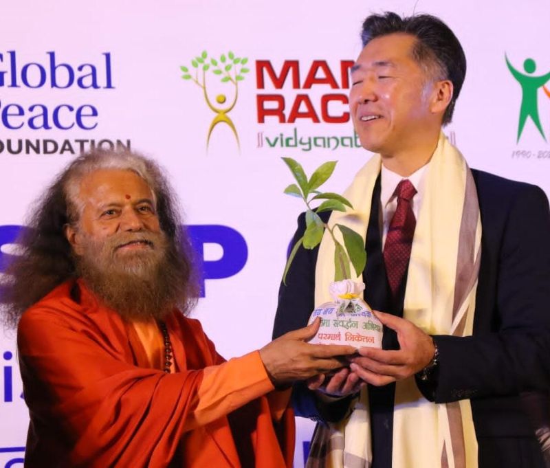 स्वामी चिदानन्द सरस्वती जी ने सभी विशिष्ट अतिथियों को रूद्राक्ष का पौधा भेंट कर सभी का अभिनन्दन किया।