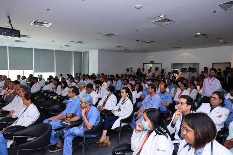 Padmashri Dr. Naresh Trehan, renowned heart surgeon and the Chairman and Managing Director of Medanta-The Medicity, invited HH Param Pujya Swami Chidanand Saraswatiji and Pujya Sadhviji Bhagawatiji to give a special spiritual session for the doctors.