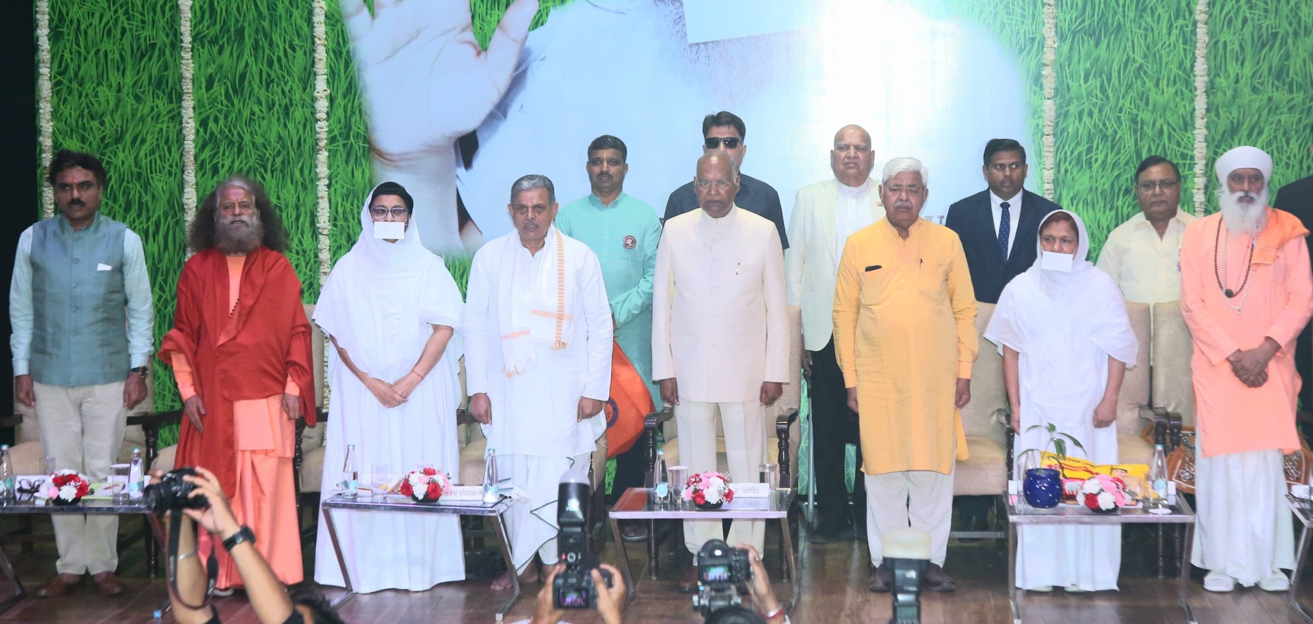 The event was graced by: 14th President of India Shri Ram Nath Kovind Ji, HH Pujya Swami Chidanand Saraswati Ji, President of Parmarth Niketan, Shri Dattatreya Hosabale Ji, Sarkaryavah, RSS, Shri Alok Kumar Ji, President, VHP, Shri Kishor Makwana Ji, Chairman, National SC Commission, Shri Gautam Oswal Ji & Shri Kamal Oswal Ji, Chairperson & Vice-Chairperson, World Ahimsa Trust And many other distinguished guests.