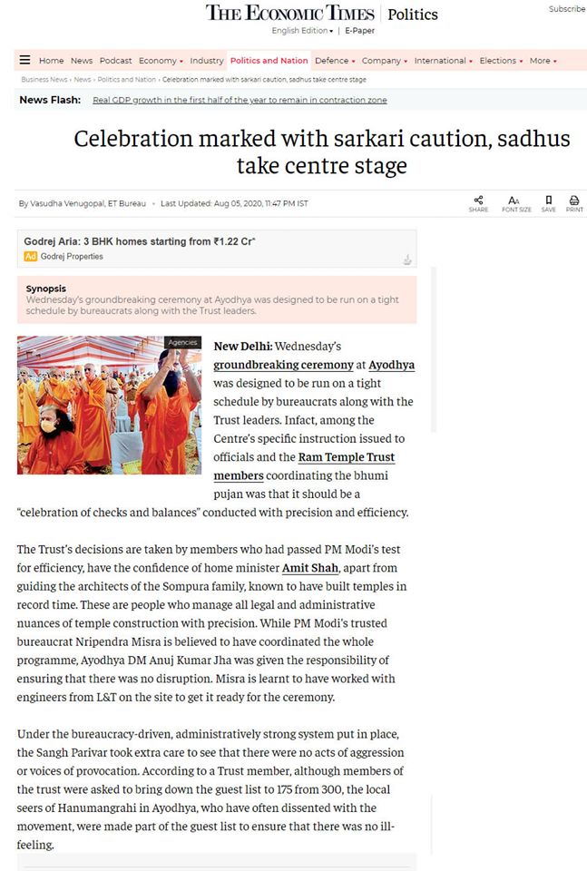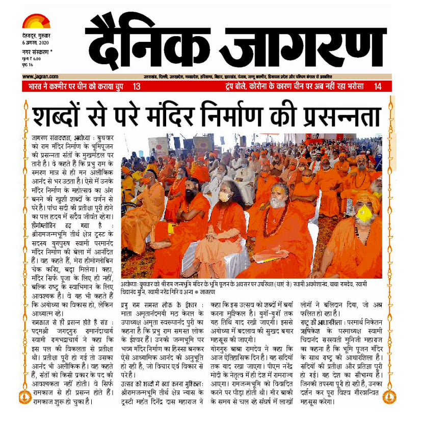 I think that along with Shri Ram temple, the foundation stone laying of the nation is also done today. He said that the soil of my country, I bow down to you hundred times. When it is a matter of soil, it is a matter of pride, it is about the whole of India and so when Lord Shri Ram ji, who is our adorable, today at his birth place, India’s successful, ascetic and energetic Prime Minister Shri Narendra Modi ji, with his own hands many respected saints. And laying the foundation stone in the presence of representatives of the society. In this divine worship, the soil of the holy places of the whole country and the water of the holy rivers was brought there and worshiped it, it is really our divine culture.”