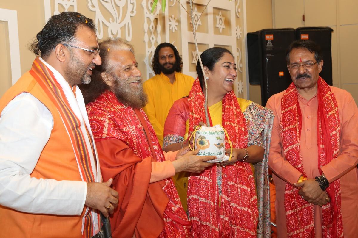 Pujya Swamiji concluded the celebration by presenting sacred Rudraksha saplings and warmly inviting everyone to the Parmarth Ganga Aarti.