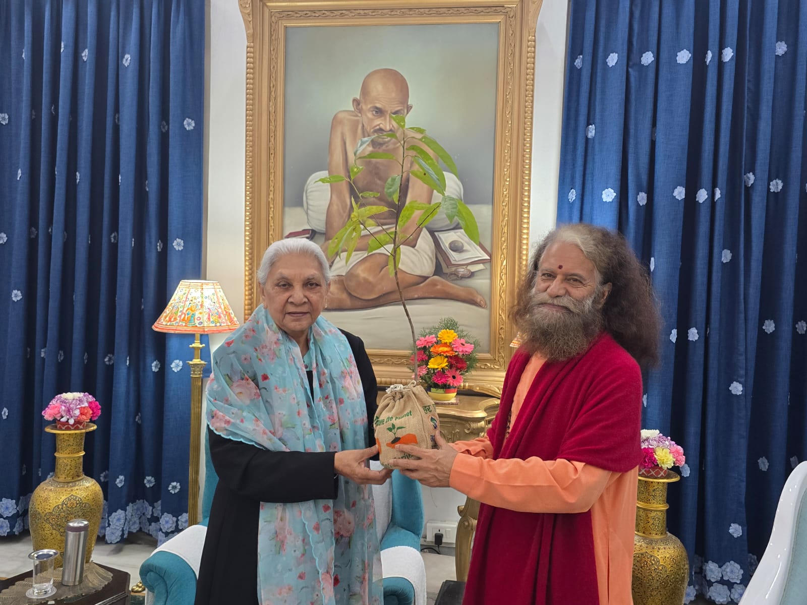 Gift of Rudraksha Plant: Pujya Swamiji presented a Rudraksha plant as a symbol of environmental conservation, which was graciously accepted by Governor Anandiben Patel Ji.