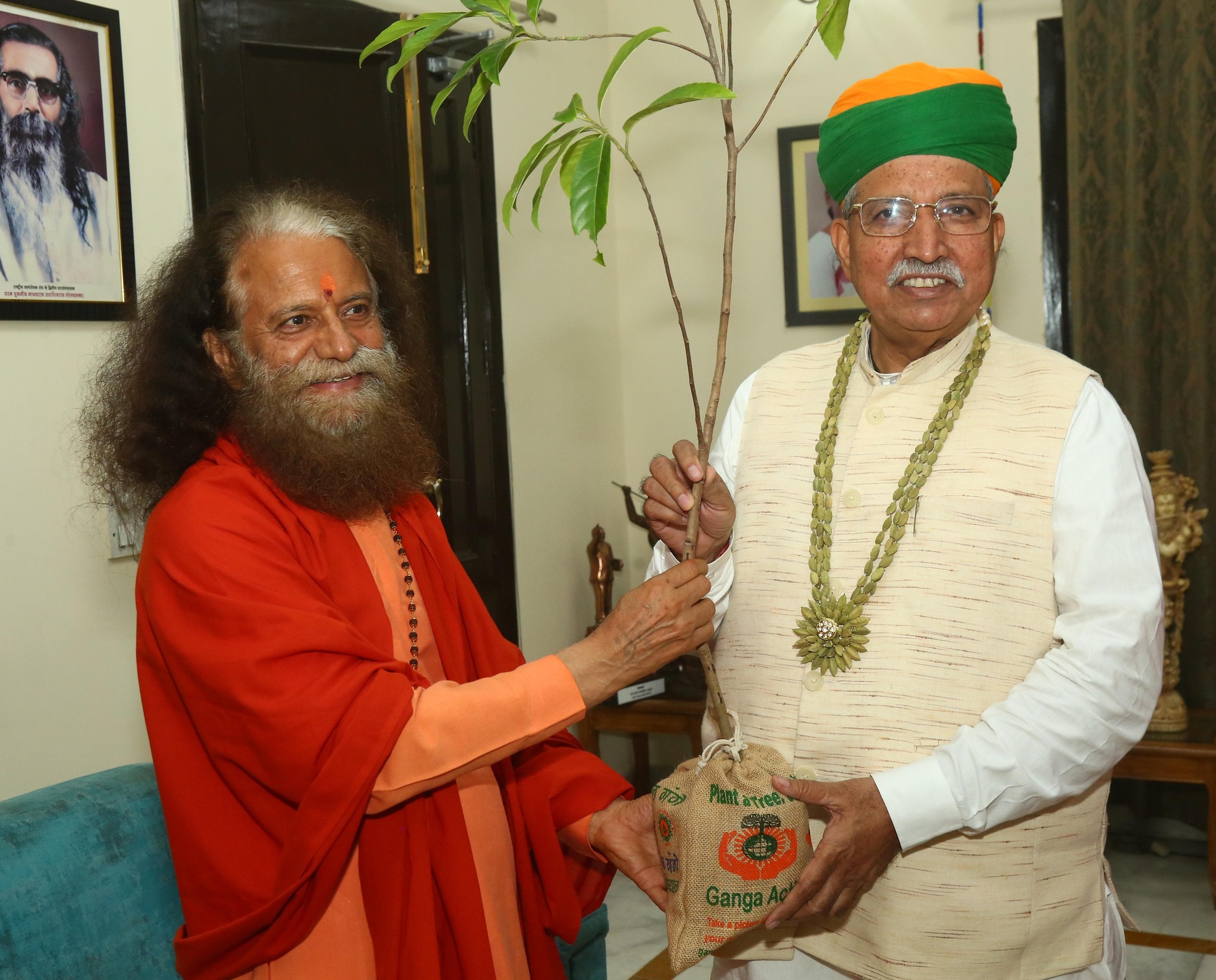 HH Param Pujya Swami Chidanand Saraswatiji – Muniji, President of Parmarth Niketan, met with Shri Arjun Ram Meghwal Ji, Minister of Law and Justice, in New Delhi. Swami Ji extended his best wishes to the Minister on his new role. Shri Meghwal and his wife, Smt. Pana Devi, warmly welcomed Swami Ji, presenting him with a handcrafted creation of ‘Shri Ram’ and a shawl. Swami Ji praised their dedication to preserving local culture and traditions.