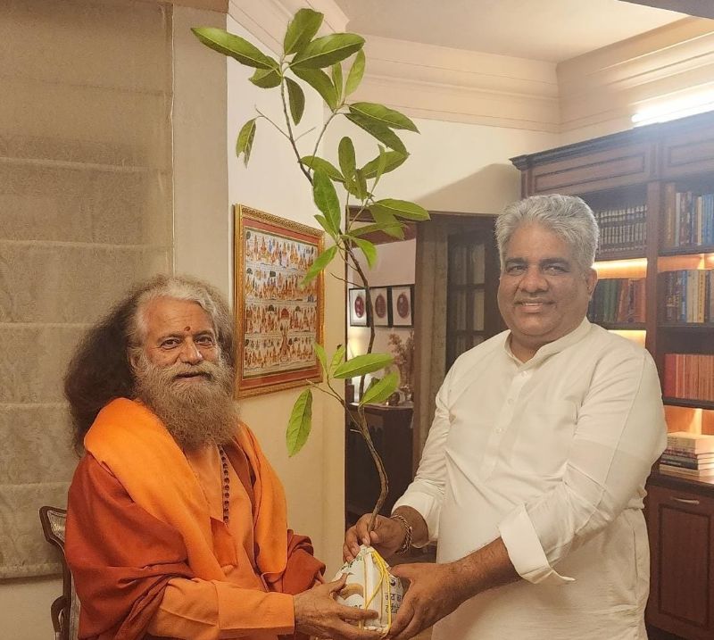 स्वामी चिदानन्द सरस्वती जी ने माननीय भूपेंद्र यादव जी को रूद्राक्ष का पौधा भेंट किया।
