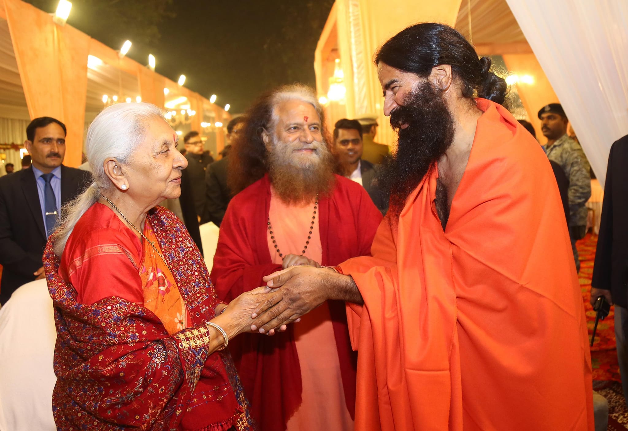 Pujya Swamiji Meets with UP Governor Smt. Anandi Ben Patelji and Yoga Guru Swami Ramdevji