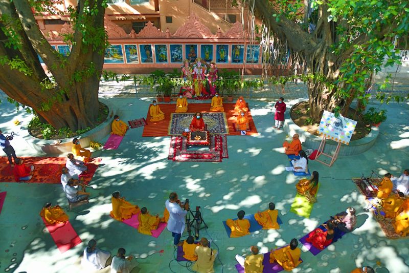 In the evening the celebrations were filled with beautiful devotional music, chanting and bhakti by devotees staying with in the ashram within the lockdown.