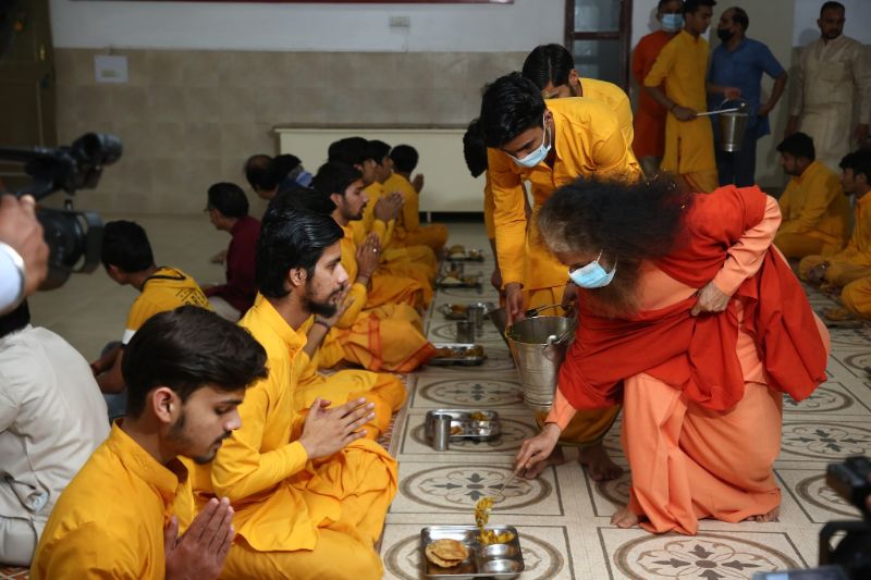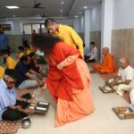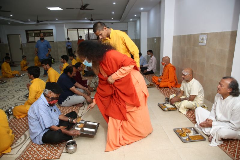 Continuing in the spirit of service to all, He personally served fresh and hot meal to all Rishikumars, Sadhus, Saints, Pilgrims and Devotees inside the Ashram premises and on the Parmarth Ganga Ghat.
