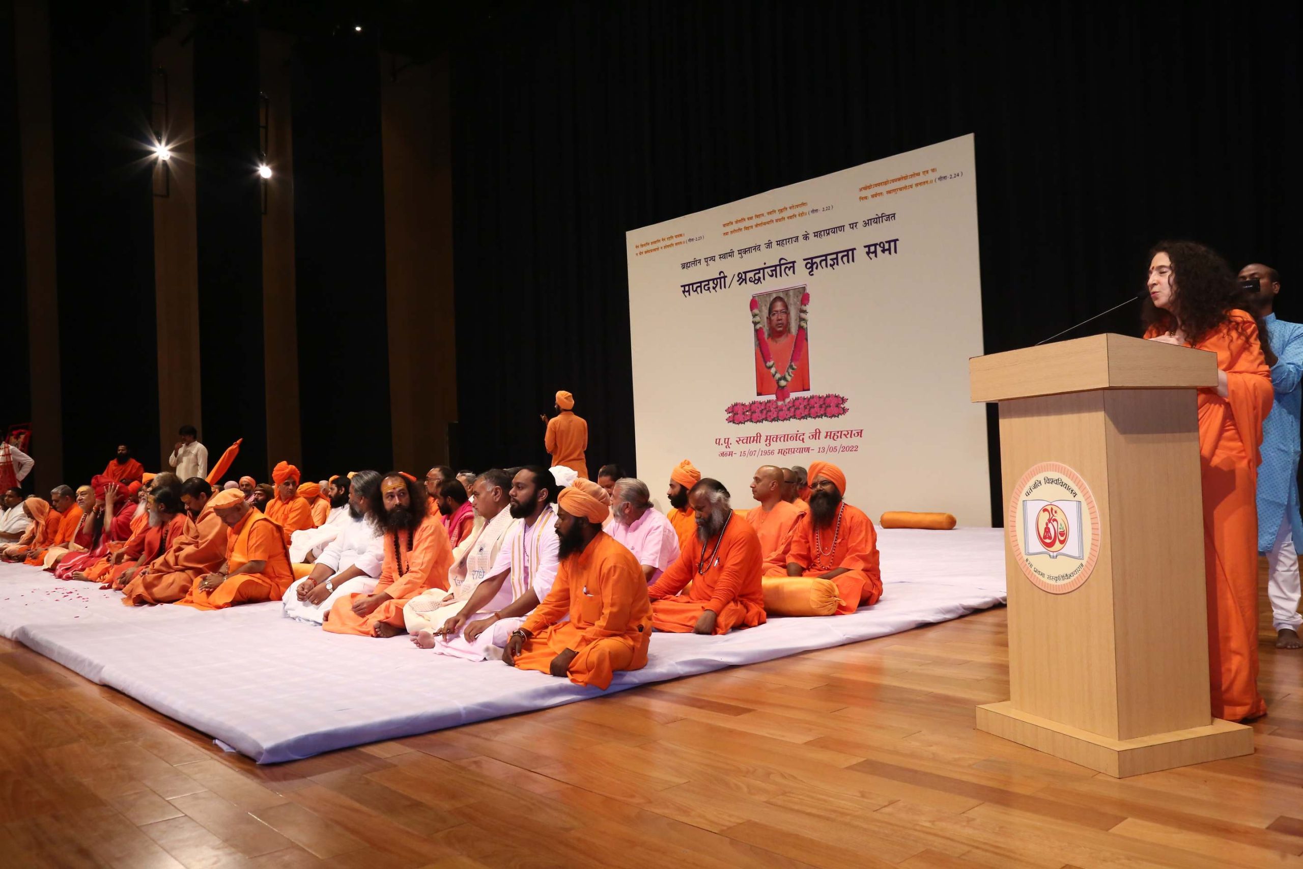HH Param Pujya Swami Chidanand Saraswatiji was joined by Sadhvi Bhagawatiji, Pujya Swami Ramdevji, Acharya Balkrishnaji and scores of saints and eminent personalities from across India in the auditorium of Patanjali University to remember and honour the passing of the revered saint, Pujya Swami Muktanand ji, whose presence was felt in the halls and grounds of Patanjali Yogpeeth for over 35 years. A brilliant Sanskrit scholar and teacher for students at the graduate and post-graduate levels, Swami Muktanandaji was also Patanjali’s treasurer and an expert in the field of medicinal herbs.