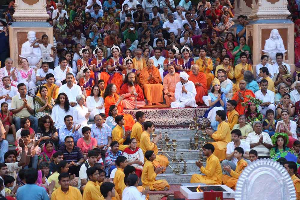 There was a beautiful Ganga Dusshera puja with the chanting of stotras, prayers and hymns for Mother Ganga. Thereafter, faith leaders performed the world-famous Ganga Aarti, at the conclusion of which, the assembled seers raised their hands in a rousing pledge for a Swachhta Kranti: a Clean Revolution for Mother Ganga. They were joined by thousands of people from around the world, who vowed to plant trees, keep our sacred rivers clean and green.