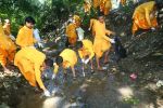 The celebrations continued with the inauguration of the 14-day Swachhata Pakhwada, an inspiring initiative themed “Salute Tirangi – Celebrate Swachhata,” in which Parmarth Rishikumars rallied with Pujya Swamiji up to the Rajaji National Park as part of a significant clean-up drive in the Swargashram area designed to transform it into “Swachha Ashram”. Students from Parmarth Gurukul and Swargashram Trust Sanskrit Vidyalaya, along with Acharyas, the Taxi Association of Swargashram, Forest Officers of the Rajaji National Park, and Safai Mitras of this region, came together to clean a black spot near the Neelkanth Taxi Stand, a key area for pilgrims embarking on their yatra to the temple, and home to the annual Kanwad Mela. There years of trash were lifted by the zeal and enthusiasm of these young students, leaving the nearby stream that flows into Mother Ganga, clean and free-flowing.