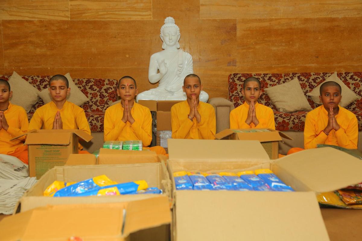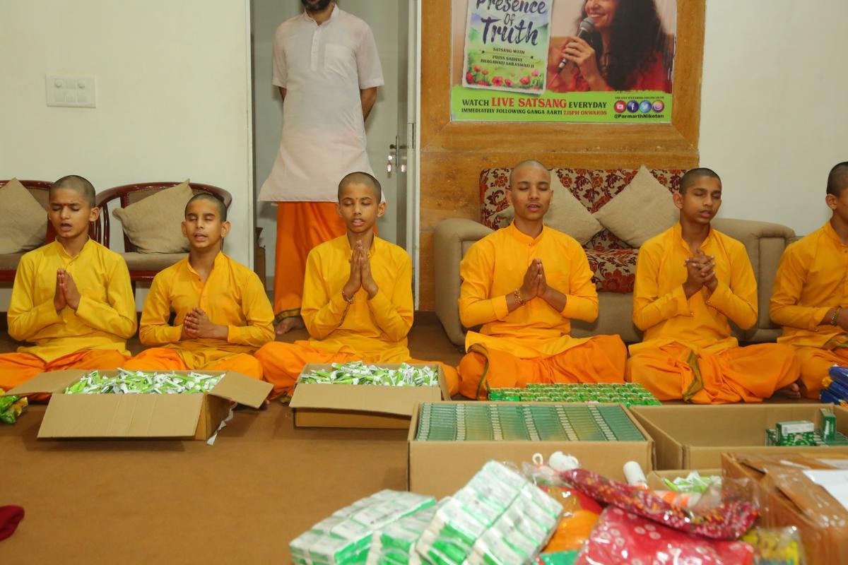 The sevadal and Rishikumars of Parmarth Niketan packed each parcel not only with necessary items but also with prayers and heartfelt wishes.