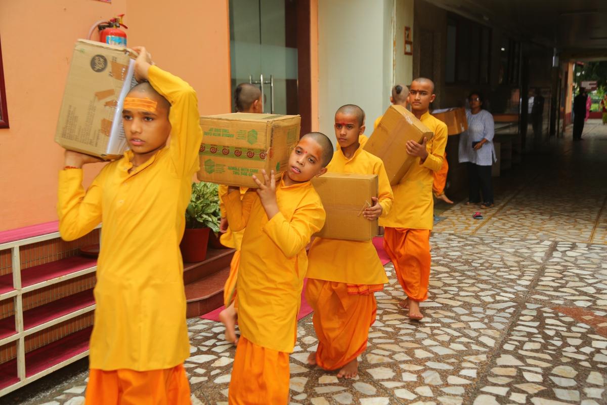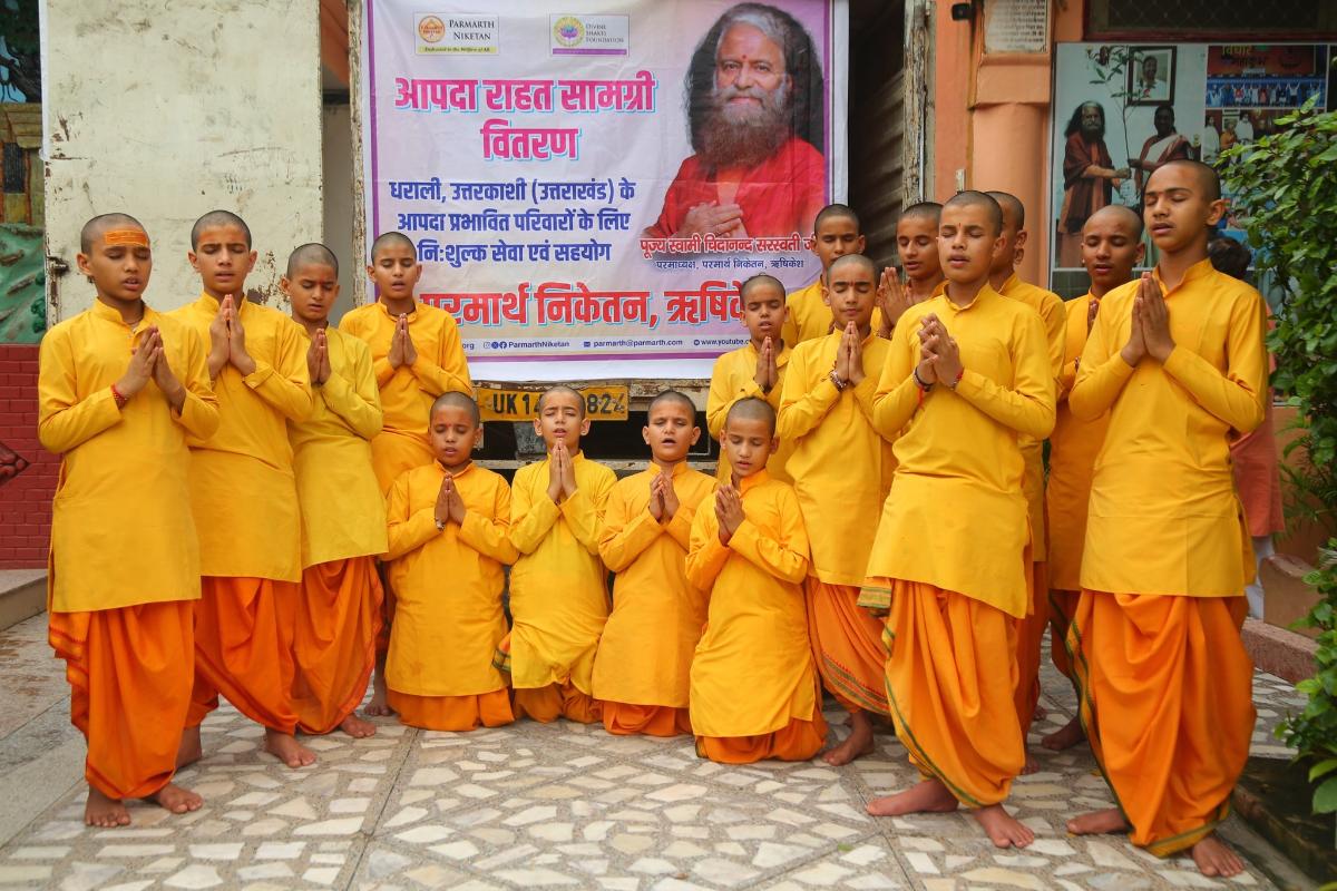 Our Parmarth Rishikumars lovingly packed and prepared the boxes to go in our second major distribution of necessities for the victims of the tragic Himalayan flood in Dharali, Uttarkashi . In both of the distributions we have provided food, medicines, clothing, rain gear, hygiene and sanitation necessities and so much more. Teaching our young Rishikumars that manas seva (service of humanity) is Madhav seva (service of the Divine) is one of our core goals at Parmarth Niketan with Pujya Swamiji’s blessings and leadership.