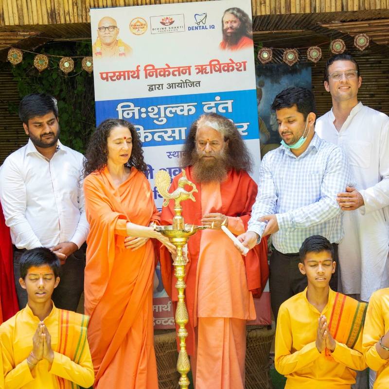 A beautiful two-day dental camp organized under the joint aegis of Parmarth Niketan, Divine Shakti Foundation and Dental IQ of Chandigarh was inaugurated in the presence of HH Param Pujya Swami Chidanand Saraswatiji, President of Parmarth Niketan; Pujya Sadhvi Bhagawati Saraswati Ji, President of Divine Shakti Foundation; Dr. Vivek Singh Rana, MDS Endodontist at Dental IQ; Dr. Gulshan, MDS PGI; Dr. Riddhima Jabike, BDS; our Rishikumars and the DSF team.