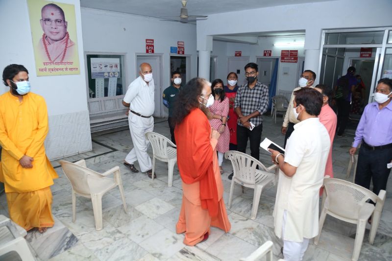These inspiring and motivating words were offered by Pujya Swamiji as He toured the Swami Shukdevanand Charitable Hospital at Parmarth Niketan recently to observe the vaccination program being offered at the facility in cooperation with Parmarth, the Divine Shakti Foundation and the Global Interfaith WASH Alliance. While there, He was advised that, in just a few weeks, over 1200 divine souls in the 45-plus age group have received their inoculations, with those in the 18-and-over group eligible for the vaccine beginning on the 20 May.